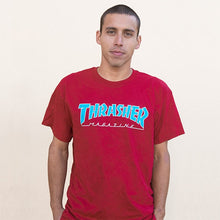 100% cotton t-shirt with outlined Thrasher Magazine logo in cardinal red.